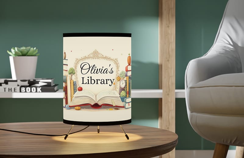 Personalized Custom Book Lover’s Library Tripod Lamp